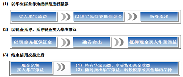 (1)通過融資融券賬戶只能買賣華寶添益,暫時無法進行申贖。